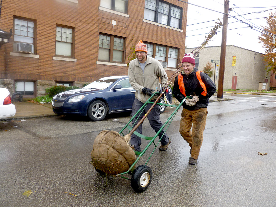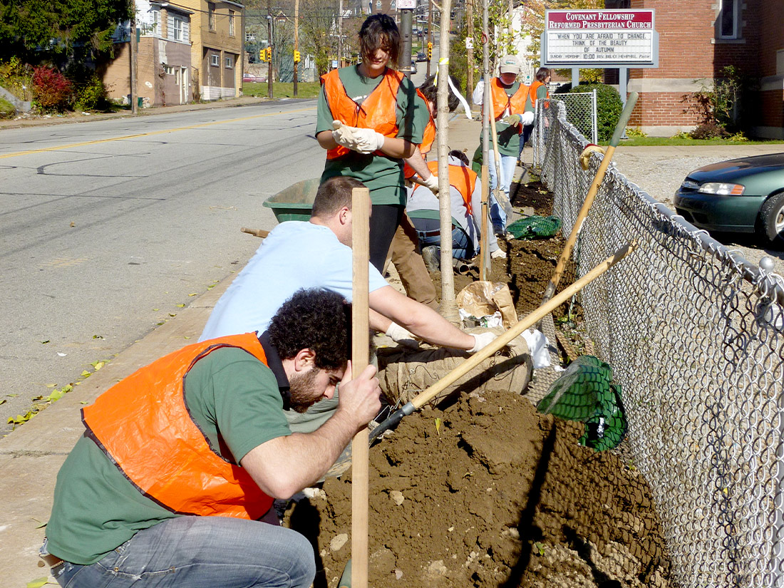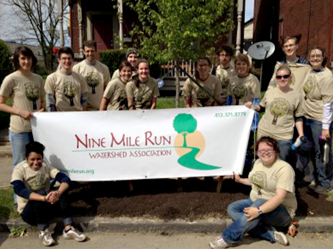 The Rooted in Wilkinsburg – 500 Tree Initiative began in the fall of 2011 as a two-year initiative to plant 500+ trees in Wilkinsburg Borough in order to reduce stormwater runoff and reduce non point-source pollution from entering Nine Mile Run. Over the two-year period, more than 400 volunteers attended 29 events and contributed 1,300 hours of service.
